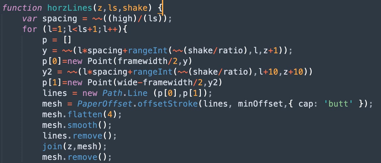 The artist often isn’t directly producing the output. Instead the artist is creating a set of instructions that utilize random variables to create a unique and distinct digital output each time it’s run. This is usually deterministic meaning it is provided with a seed value that will produce the same output each time it’s run given the same seed value.